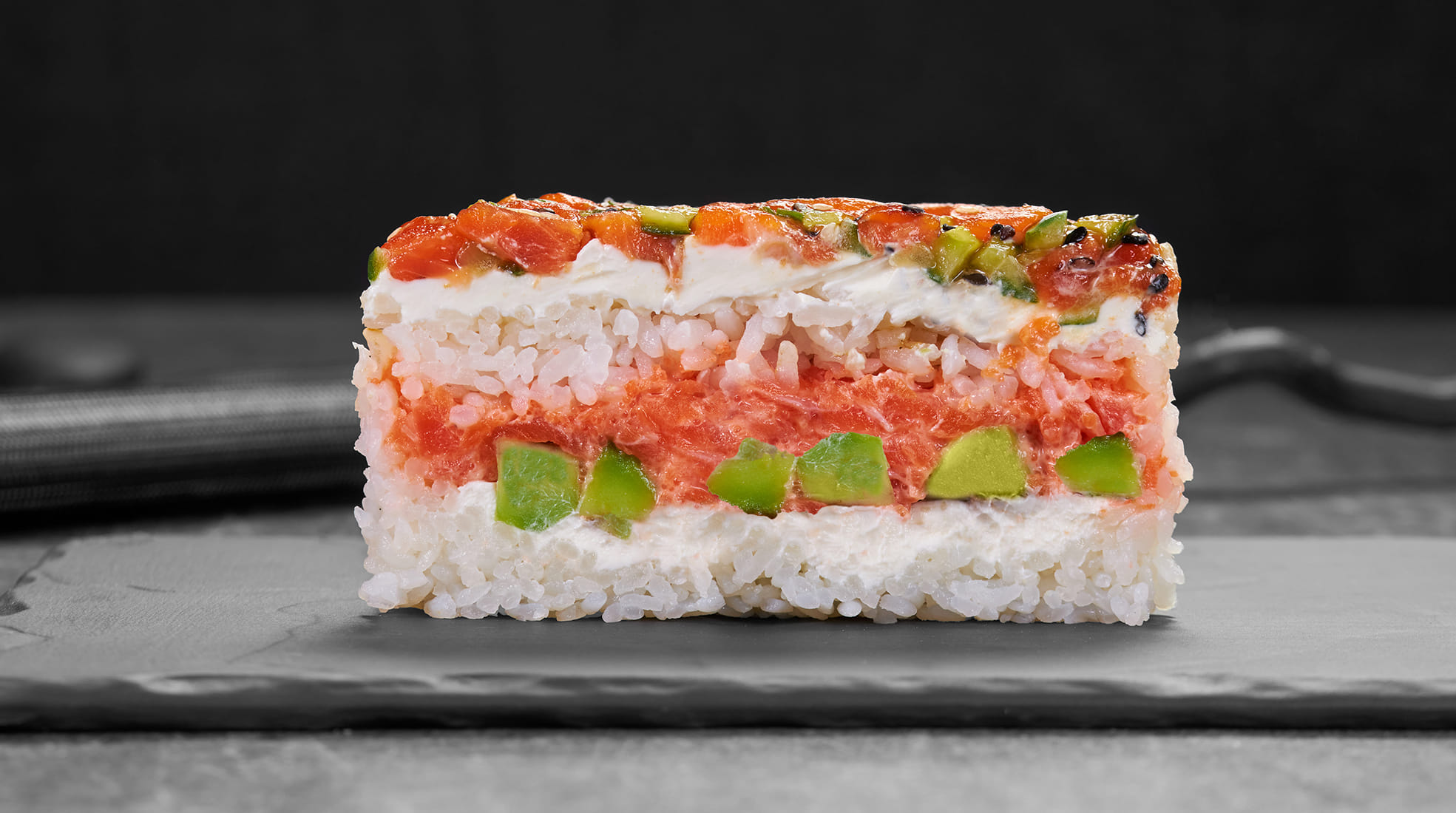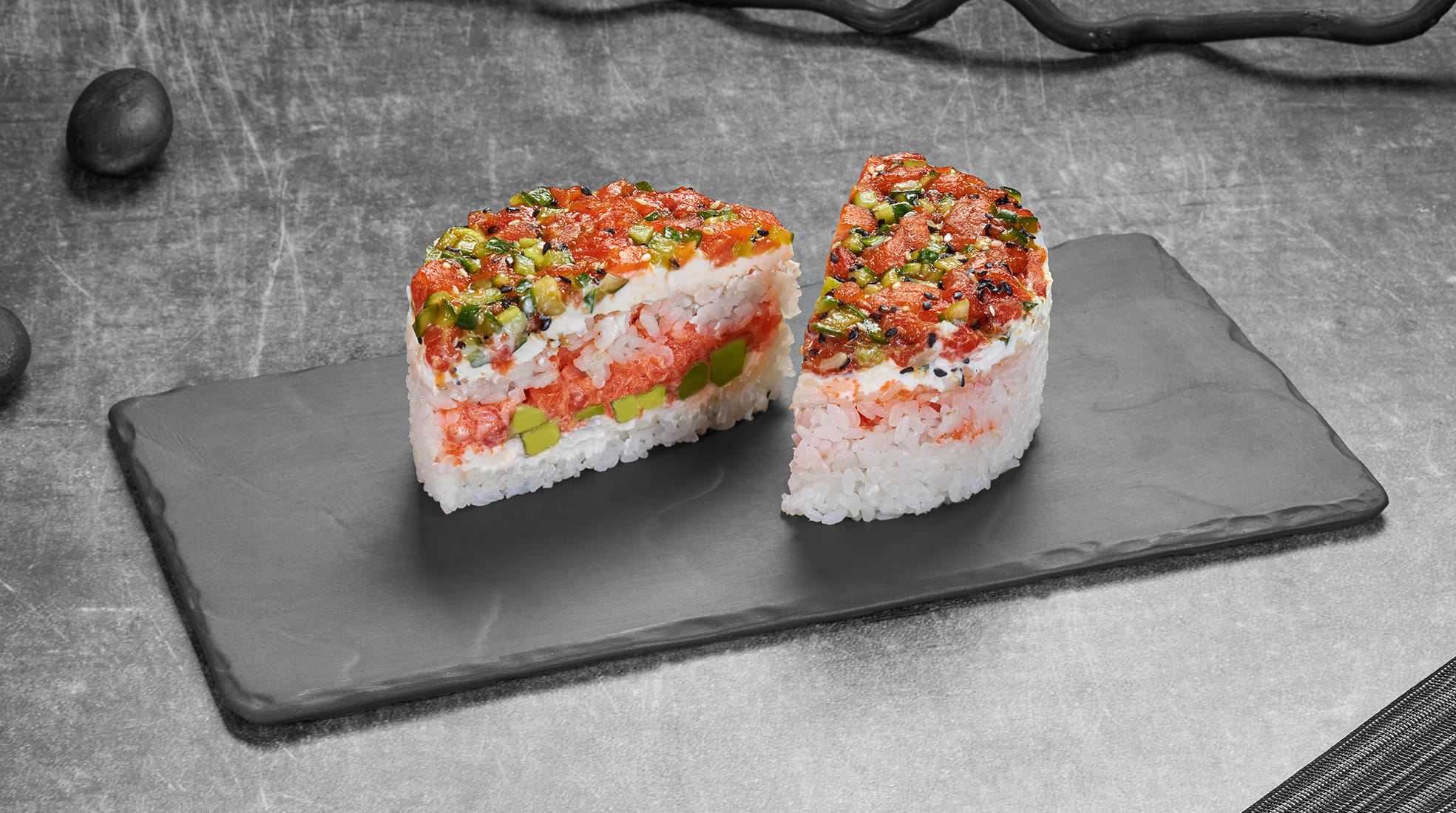 Состав: Лосось, сыр сливочный, авокадо, икра масаго, огурец, соус унаги, соус японский майонез, рис, кунжут