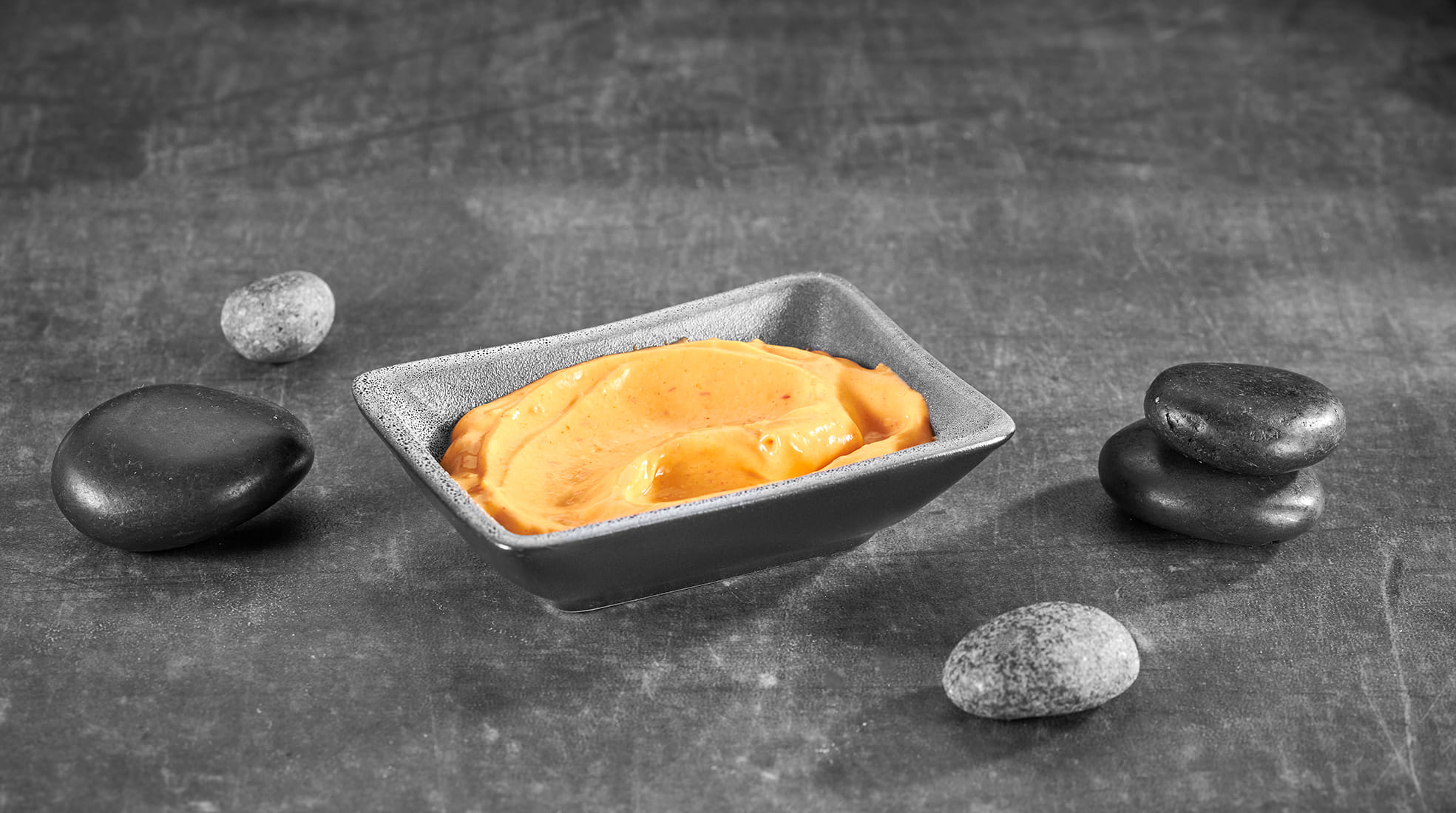 Состав: Соус на основе майонеза, острой пасты чили, ароматного кунжутного масла. Отлично подходит к запечённым роллам, салатам. Может использоваться как альтернатива соуса майонез для тех, кто любит острые блюда.