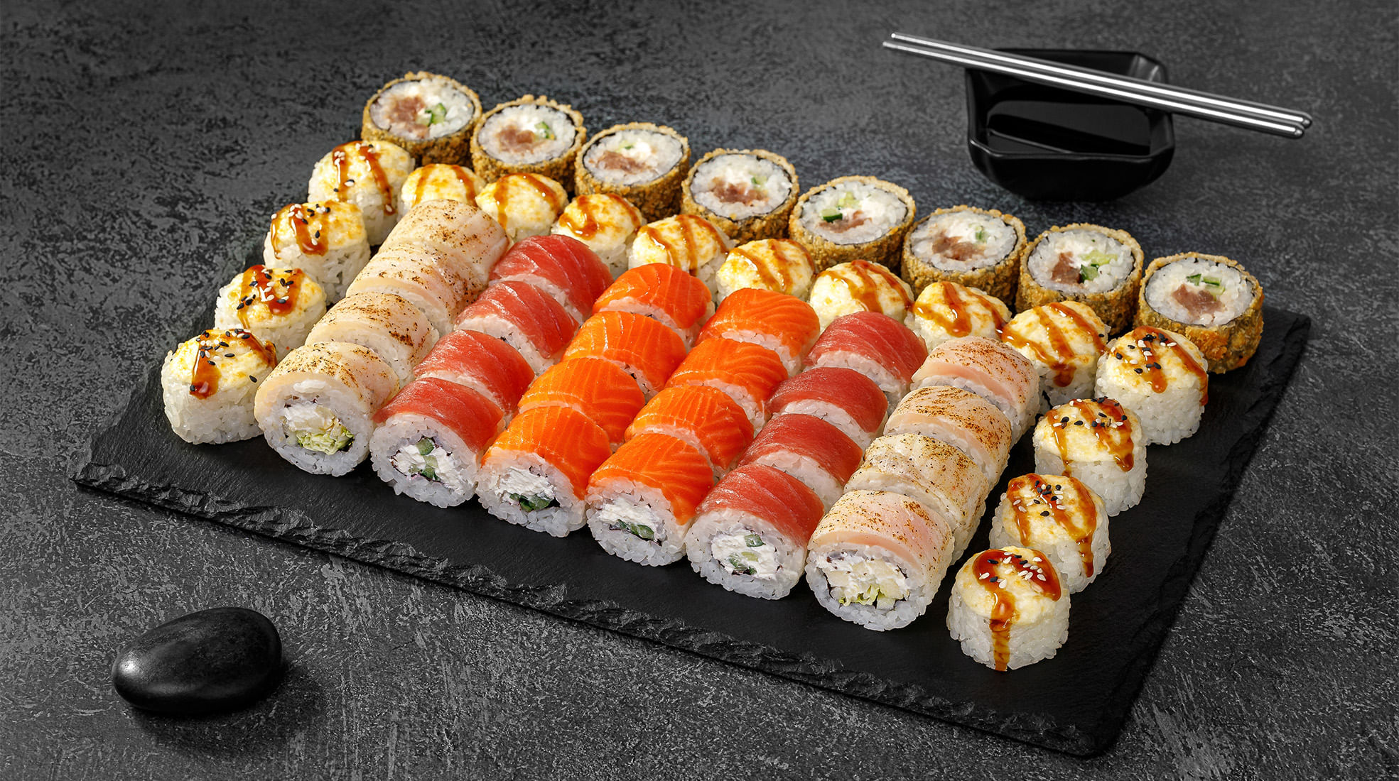 Состав: Филадельфия лайт сяке (8шт.), Филадельфия лайт магуро (8шт.), Ролл перечный (8шт.), Горячая креветка (8шт.), Мистер крабс (8шт.), Филадельфия темпура с тунцом (8шт.)