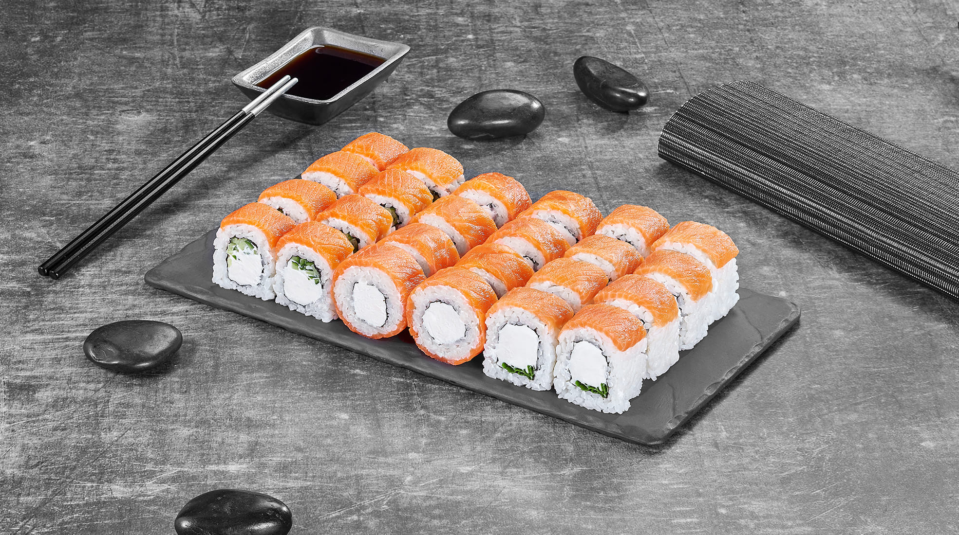Состав: Филадельфия лайт сяке (8шт.), Филадельфия лайт сяке с авокадо (8шт.), Филадельфия классика (8шт.)