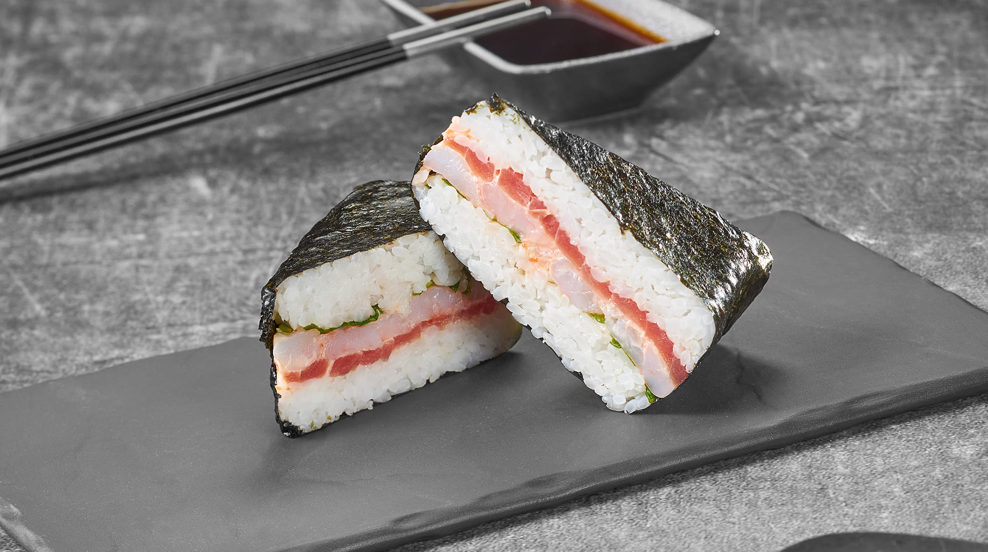 Состав: Тунец, креветка, зеленый лук, розовый соус соус, рис, нори