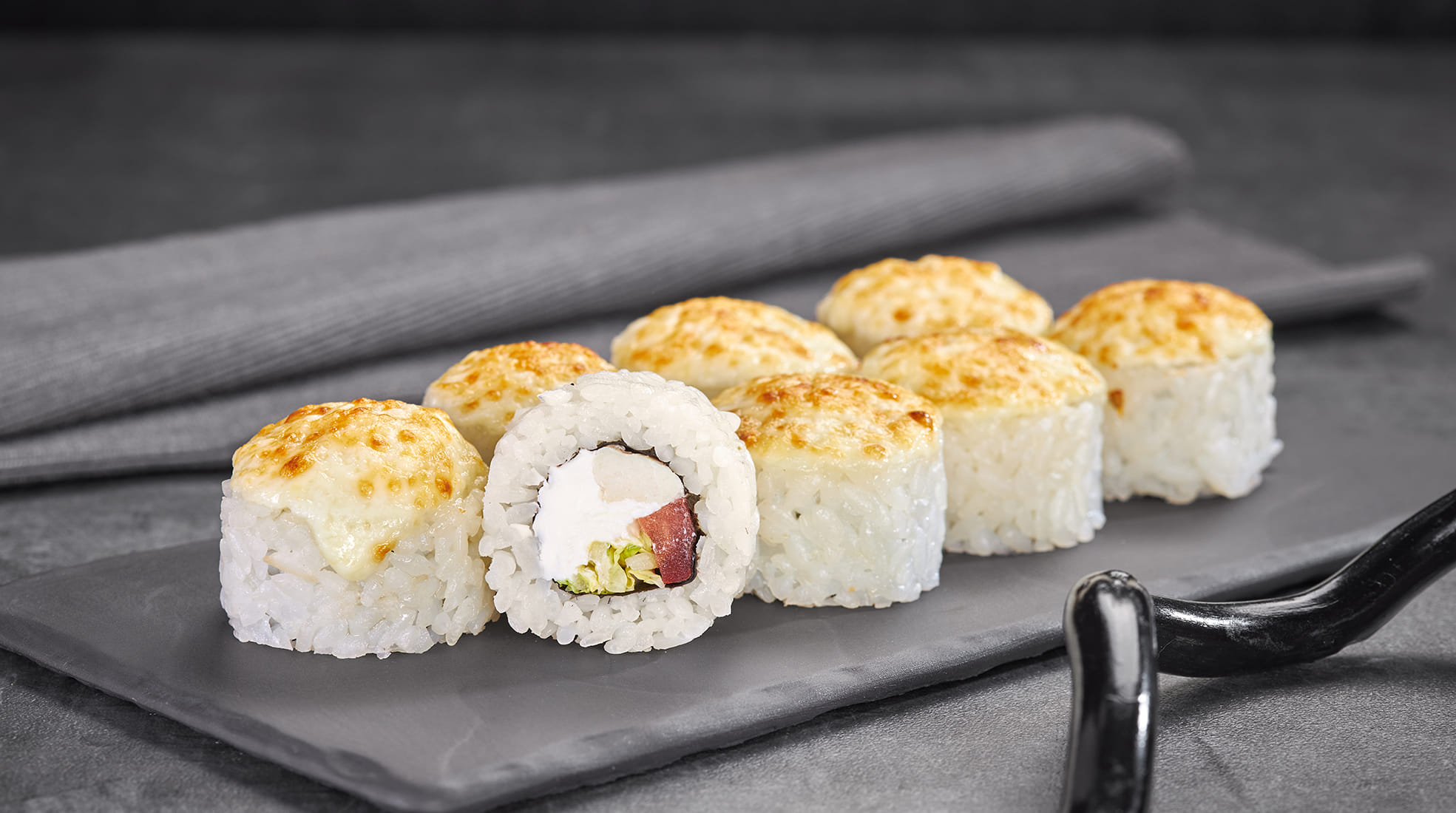 Состав: Курица, рис, сливочный сыр, помидоры, соус монако, капуста пекинская , нори