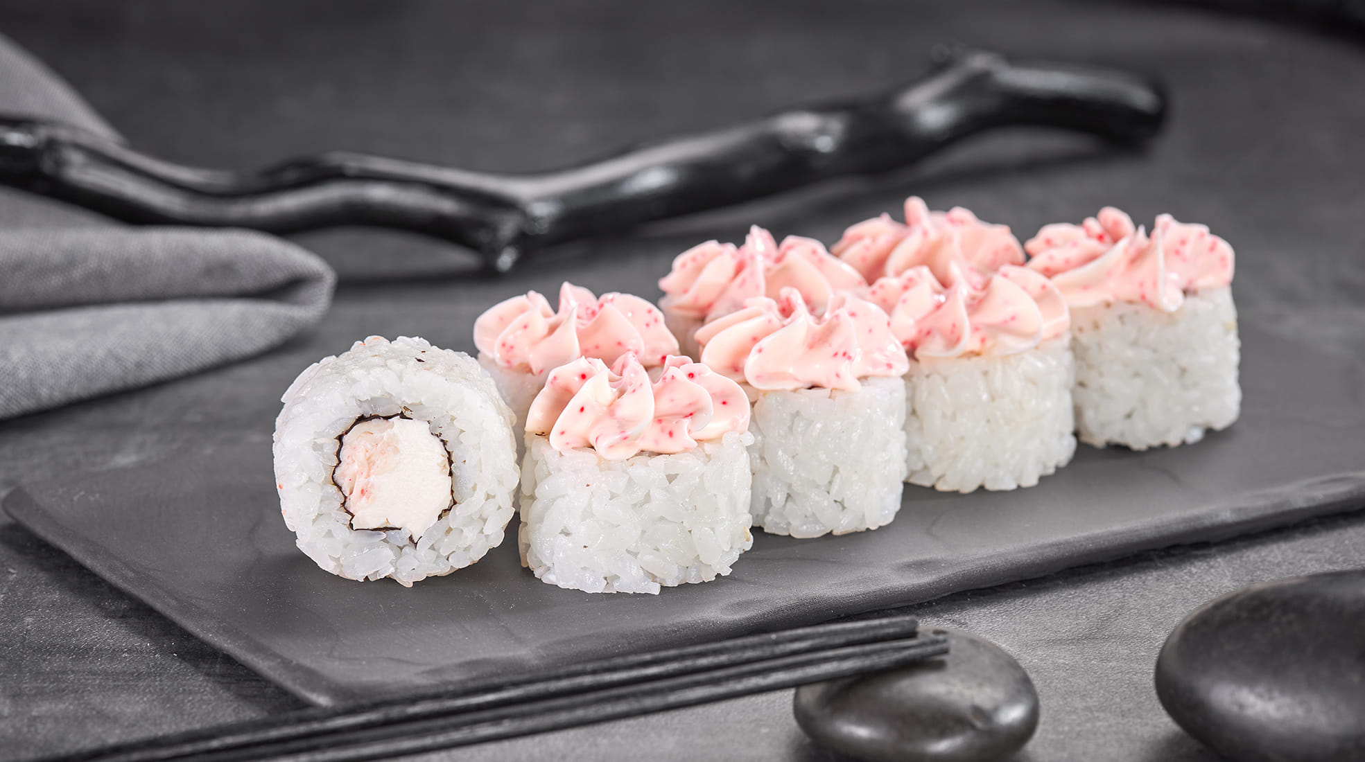 Состав: Замес краб-микс, рис, соус лава, сливочный сыр, нори