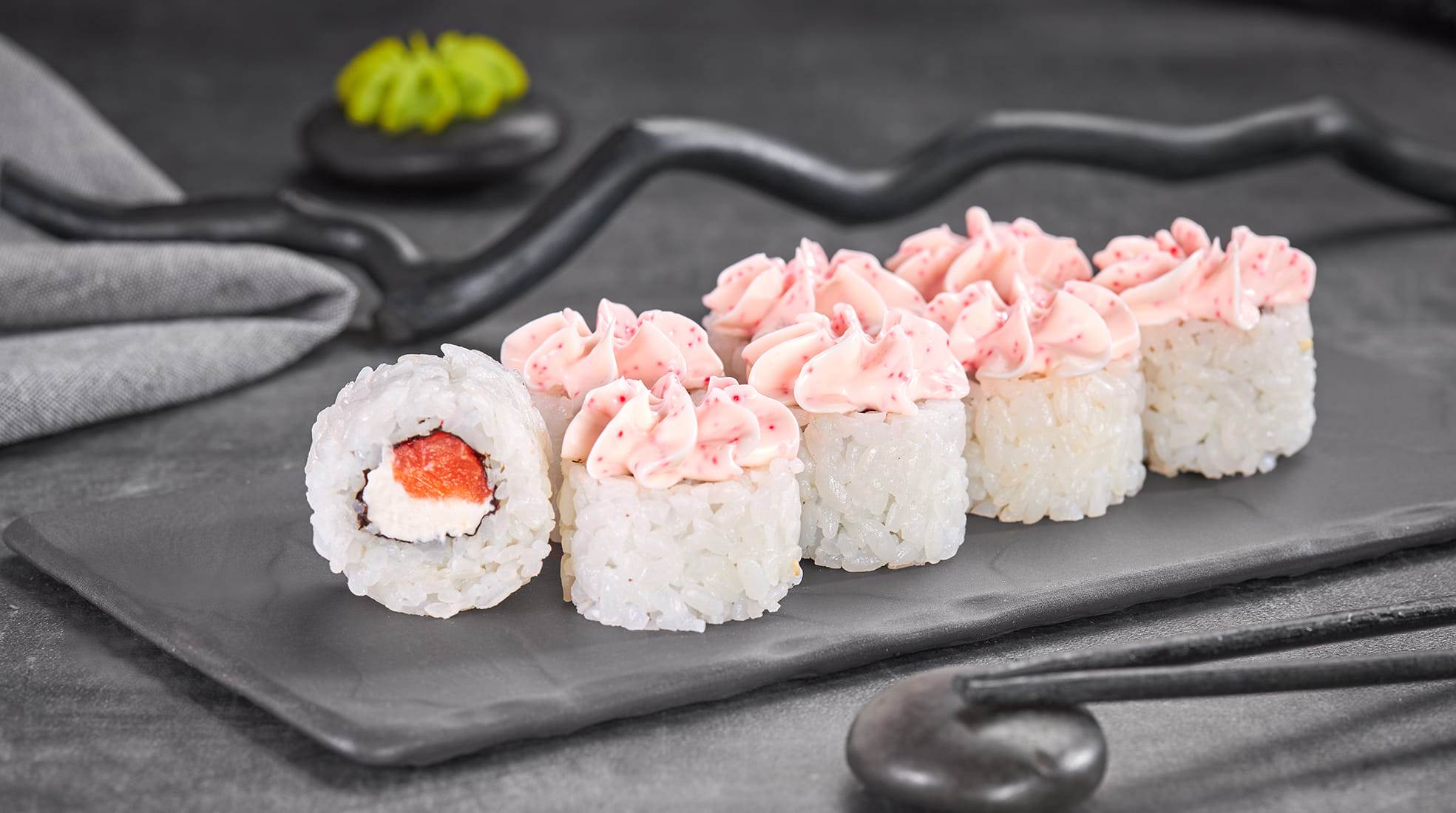 Состав: Лосось, рис, соус лава, сливочный сыр, нори